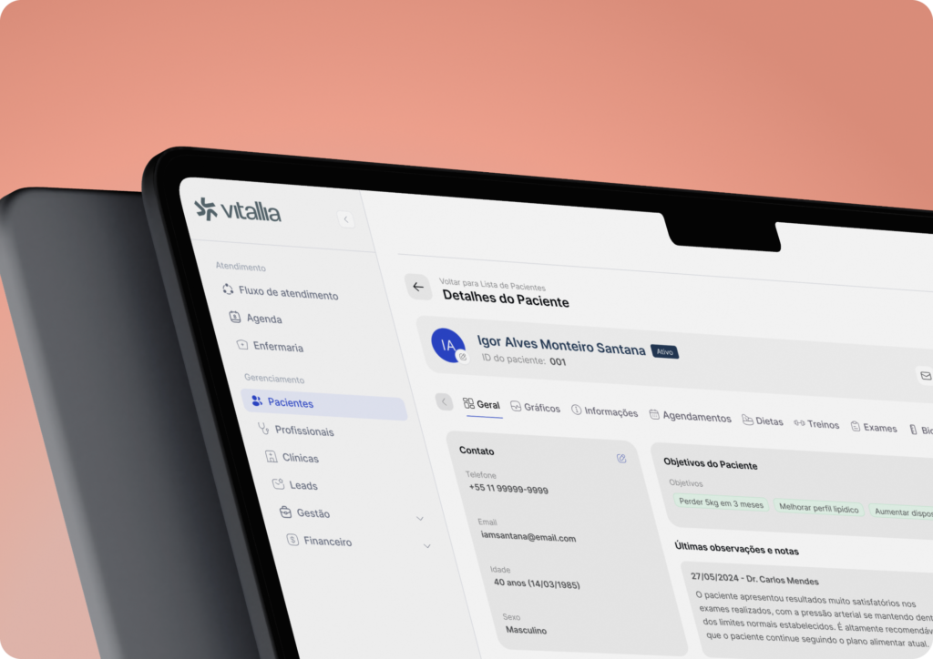 A Toodoo foi responsável por conceber e desenvolver a plataforma tecnológica do Vitallia, estruturando uma solução SaaS voltada para clínicas de saúde.